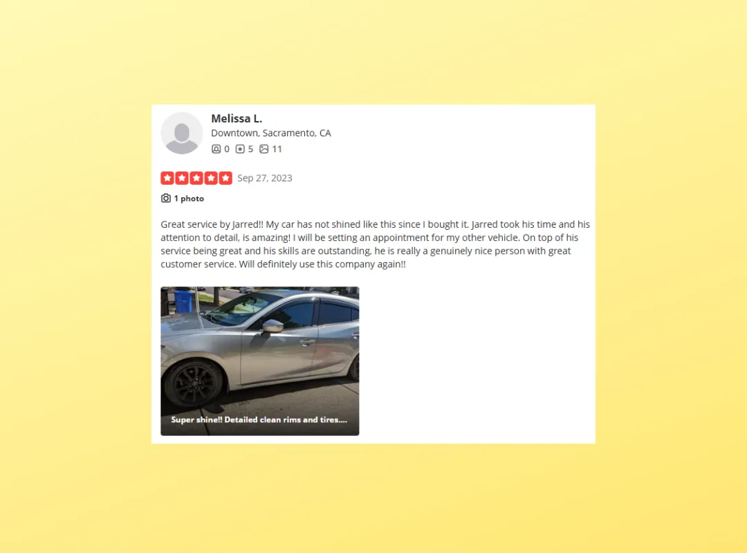 No matter what part of Elk Grove you live in, convenient, professional auto detailing, delivered with smile is just a few clicks away!